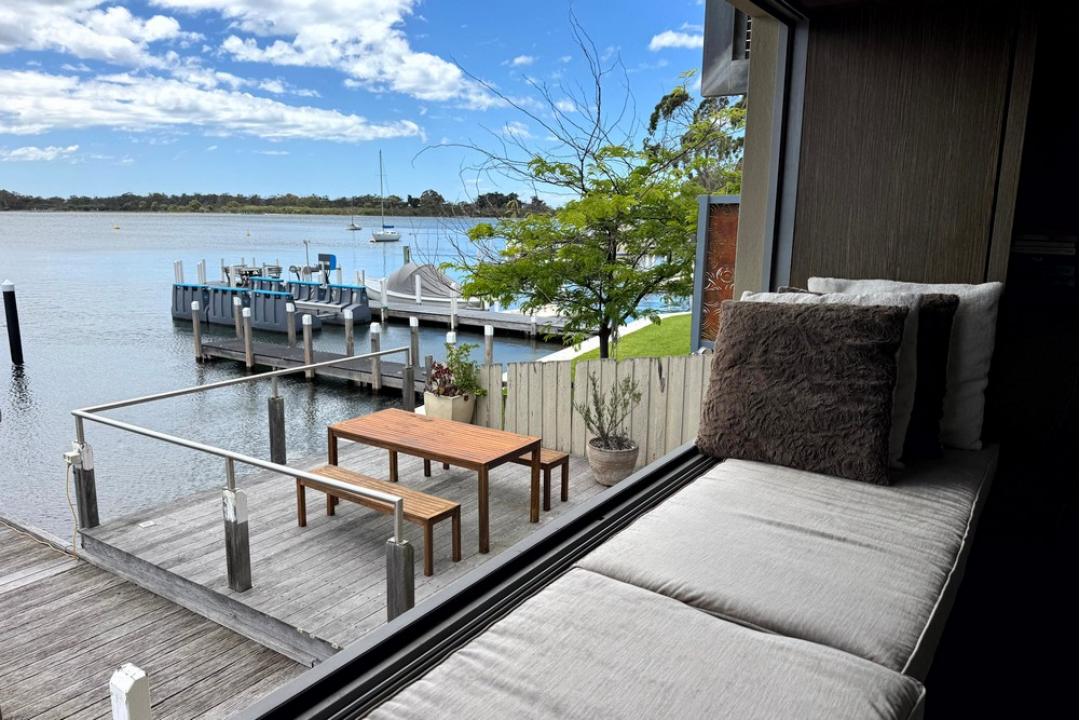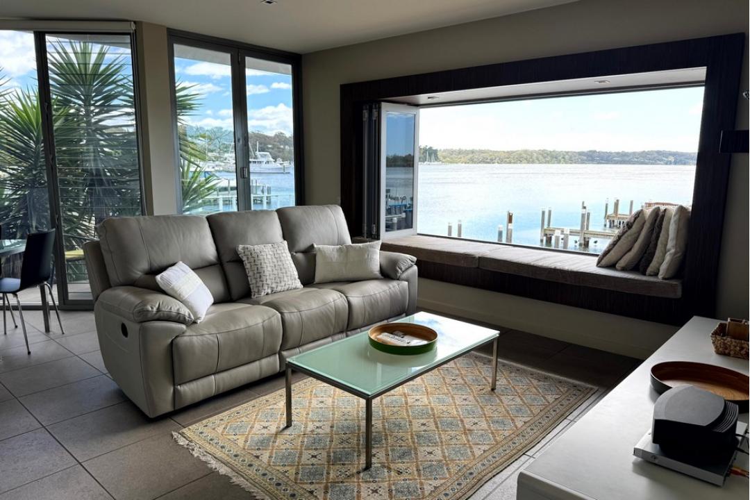 A very spacious and comfortable boutique apartment with absolute water frontage and stunning views from the window seat across Bancroft Bay. Cool in Summer and warm in Winter, the easterly aspect makes the most of the sunrise across the bay. The position is perfect for couples choosing to relax within walking distance from all amenities. Boat owners will appreciate the private jetty berth directly beneath the window seat.