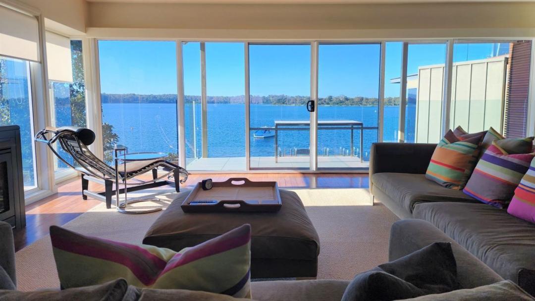Relax in the light-filled open plan living area, where floor-to-ceiling windows showcase dramatic 270-degree views over Bancroft Bay and frame the sparkling waters of the Gippsland Lakes. Step out onto the sunlit deck to enjoy your morning coffee or evening glass of wine while soaking up sea breezes and the peaceful waterfront atmosphere.